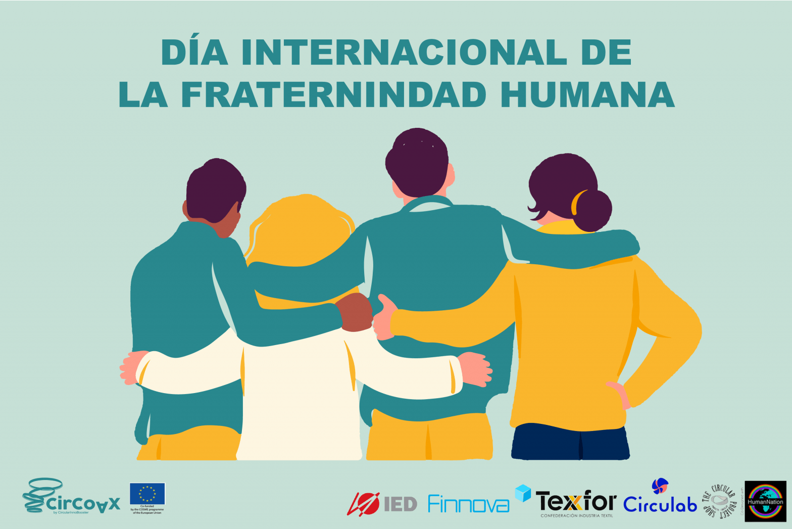 Hoy viernes 4 de febrero Naciones Unidas celebra el Día Internacional de la Fraternidad Humana para la Paz y la Cooperación, destacando la importancia de compartir valores, respetar creencias y culturas en la humanidad. Desde el proyecto CircularInnoBooster y el programa de aceleración en sostenibilidad y economía circular de CirCoAX nos unimos a esta celebración acentuando nuestro compromiso con la cooperación y el empoderamiento de las comunidades y sectores implicados en la moda y el textil, a través de una educación en sostenibilidad y valores.