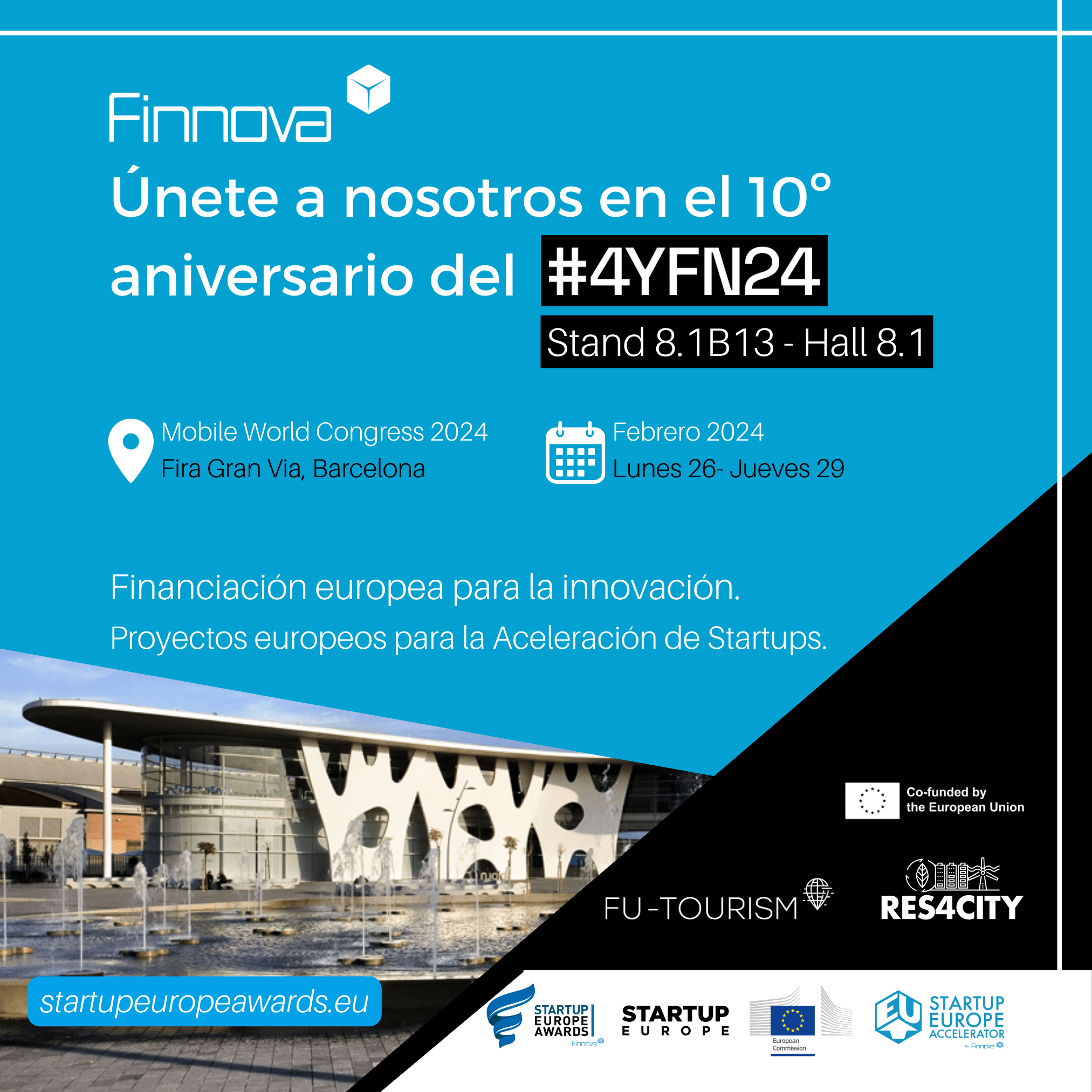 Celebrado en el marco del Mobile World Congress de Barcelona, el mayor y más influyente evento mundial del sector móvil, 4YFN reunirá a miles de fundadores, nuevas empresas e inversores de todo el mundo. En sus diez años de vida, la feria se ha consolidado dando voz a los emprendedores y líderes empresariales del futuro, poniendo en contacto a más de 9.200 fundadores y más de 5.200 inversores de todo el mundo, que buscan las startups digitales más prometedoras. La edición del año pasado acogió cerca de 1.000 inversores que representaban 41.000 millones de euros en fondos, 800 expositores, 375 ponentes y más de 250 presentaciones de startups. En este marco, y ante las nuevas convocatorias de proyectos europeos, la presencia de Finnova servirá para explicar proyectos que pueden escalarse a otros programas europeos y cómo hacerlo.