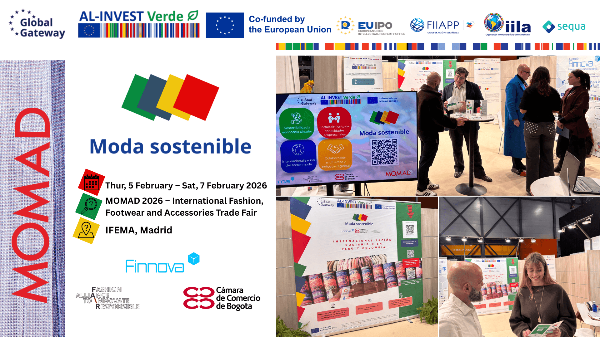 During MOMAD, Fundación Finnova showed how the project supports Latin American companies through training, technical assistance, certification, innovation, and access to markets. These actions help MSMEs meet environmental and market requirements. The participation also confirmed that sustainable fashion is a real opportunity for growth, internationalisation, and green jobs creation, and that the textile sector is moving in line with the European Green Deal, particularly in emissions reduction and circular economy development.