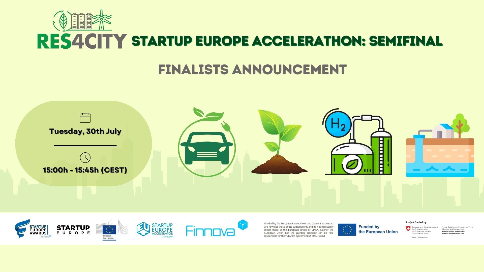 This final will decide the winner of the RES4CITY STARTUP EUROPE ACCELERATHON, who will receive a European Acceleration Ticket. This ticket consists of advice from the Finnova Foundation for the co-writing of a proposal eligible for European funding. In addition, the winners will be able to attend events related to their idea to gain visibility and meet other interested parties.