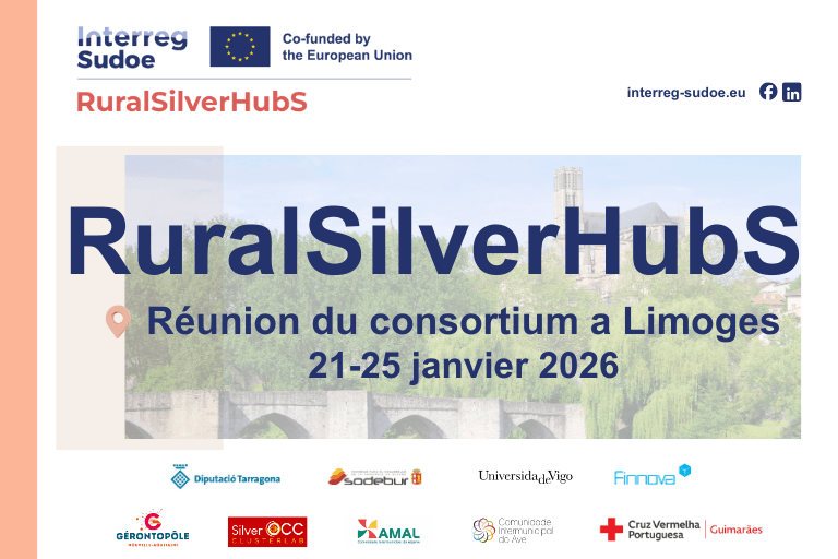 Les partenaires du projet européen Interreg Sudoe RuralSilverHubS se réuniront à Limoges (Nouvelle-Aquitaine, France) les mercredi 21 et jeudi 22 janvier 2026 pour une réunion de consortium de deux jours et une série d’ateliers visant à faire progresser les réponses innovantes aux défis du vieillissement, du dépeuplement et de l’accessibilité des services dans les zones rurales.
