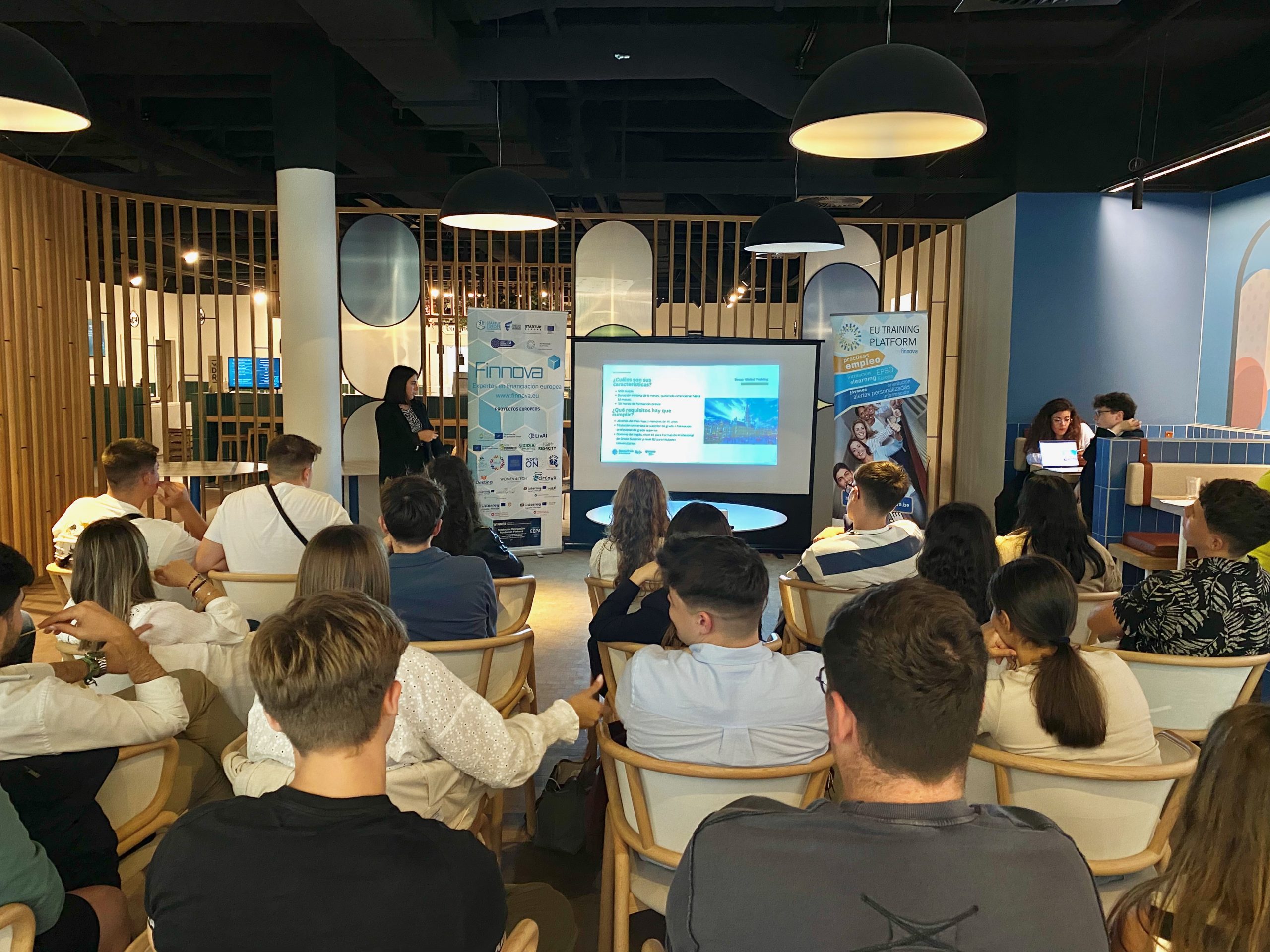 La sesión comenzó con una presentación de Guillermo Suárez, asistente de proyectos europeos en Finnova, quien habló sobre diversas oportunidades para los jóvenes en la Unión Europea, destacando programas de movilidad, becas y proyectos de emprendimiento.