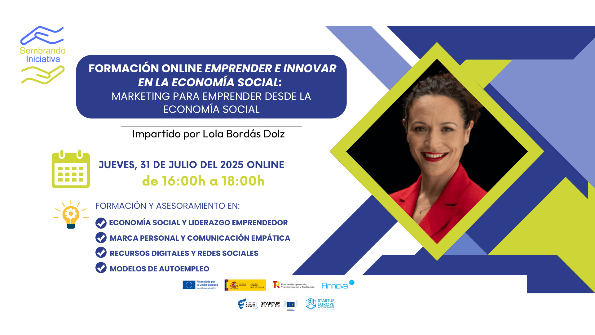 Bruselas, 28 de julio de 2025. La Fundación Finnova celebrará el próximo jueves 31 de julio, de 16:00 a 18:00 horas (CEST), la segunda sesión del ciclo de formaciones online “Emprender e Innovar en la Economía Social: Marketing para emprender desde la economía social”, enmarcado en el proyecto nacional Sembrando Iniciativa. La jornada, dirigida especialmente a mujeres en situación de vulnerabilidad, personas migrantes con formación universitaria, y quienes desean reorientar su perfil profesional hacia el emprendimiento social, abordará las claves del marketing digital con propósito como motor de autoempleo, visibilidad e impacto en la economía social y solidaria.