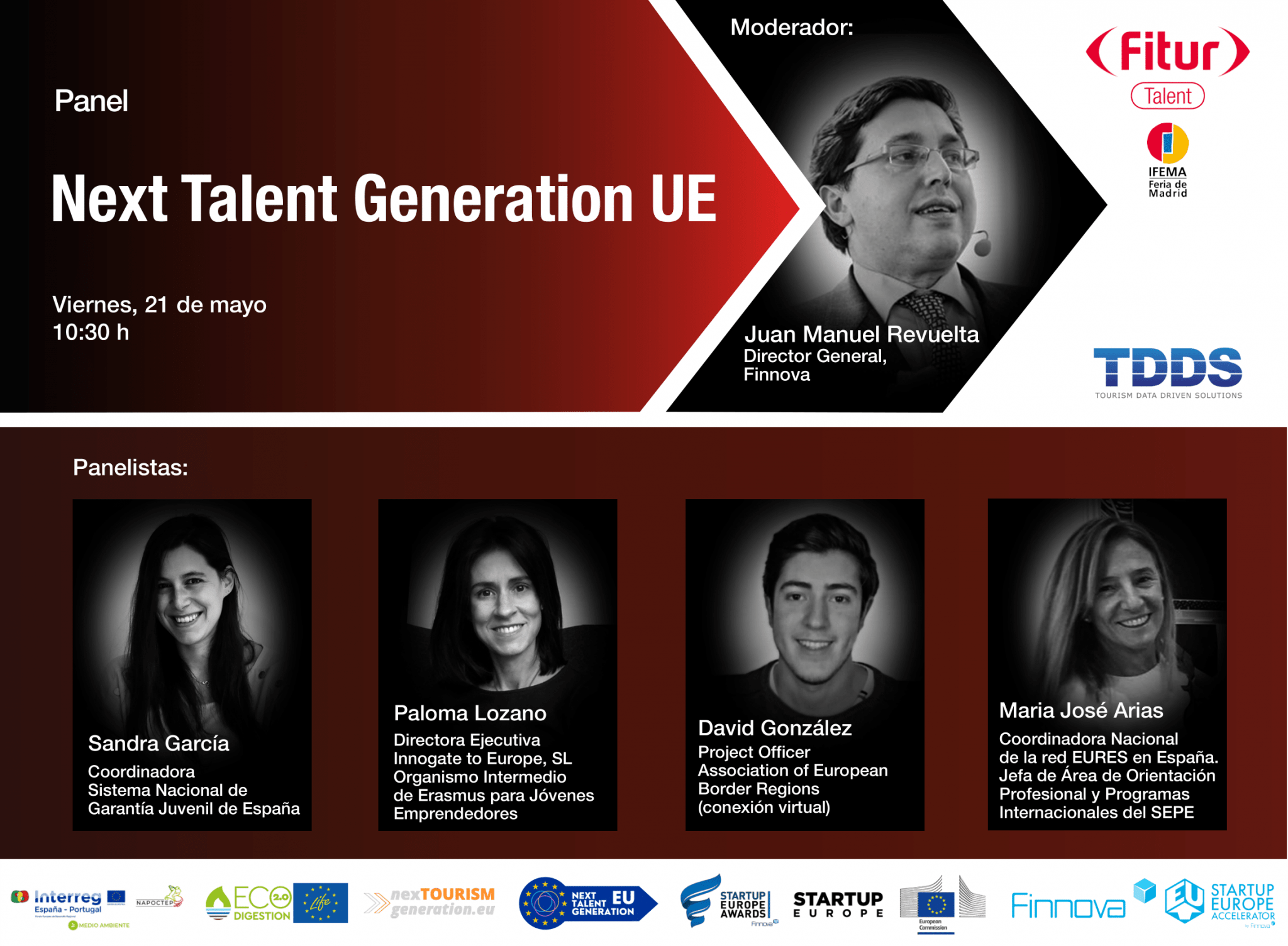 La mesa estará moderada por Juanma Revuelta, CEO de la fundación, quien ha desarrollado su actividad en diversos proyectos como Finnova Interreg Tourisme dotado con 7,5 millones de euros y ha sido el creador del Tourism Startup Europe Awards, además de promover la iniciativa de NextTalentGeneration.eu, una plataforma destinada a la búsqueda de prácticas formativas a nivel europeo. El programa NextTalentGeneration nace con el objetivo de crear una alianza europeísta que agrupe entidades de diversa índole (organizaciones sin ánimo de lucro, empresas, universidades, instituciones europeas, autoridades administrativas nacionales, etc.), para ofertar en una misma plataforma oportunidades formativas en el marco de la UE. Esta plataforma pretende mostrar los programas que ofertan prácticas de movilidad en Europa con el objetivo de fomentar la movilidad transnacional y mejorar el nivel de empleabilidad de los jóvenes.