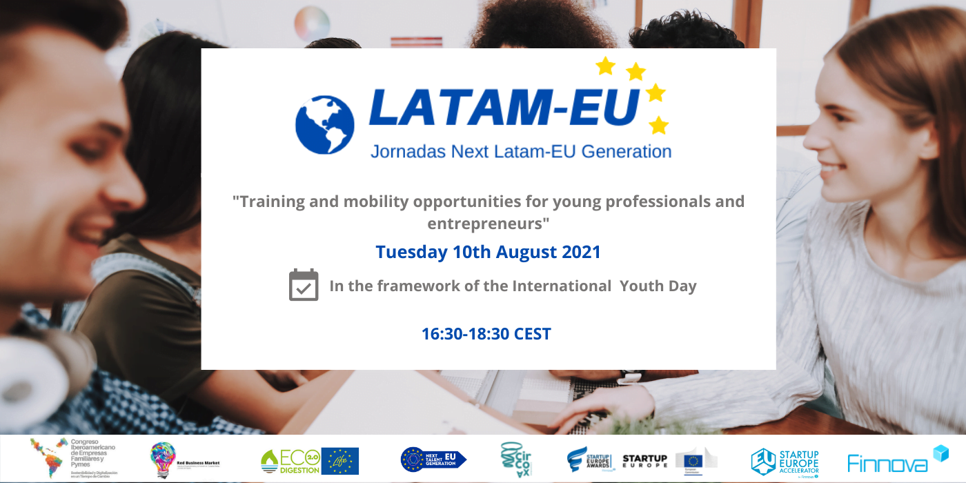 Bruselas, 29.07.2021 – El martes, 10 de agosto de 2021, en el marco del Día Internacional de la Juventud, la Fundación Finnova y Startup Europe Awards lanzan la quinta jornada del ciclo Next LATAM-EU Generation: “Oportunidades de formación y movilidad para jóvenes profesionales y emprendedores”, con la colaboración de la Red Business Market y el Congreso Iberoamericano de Empresas Familiares y Pymes.