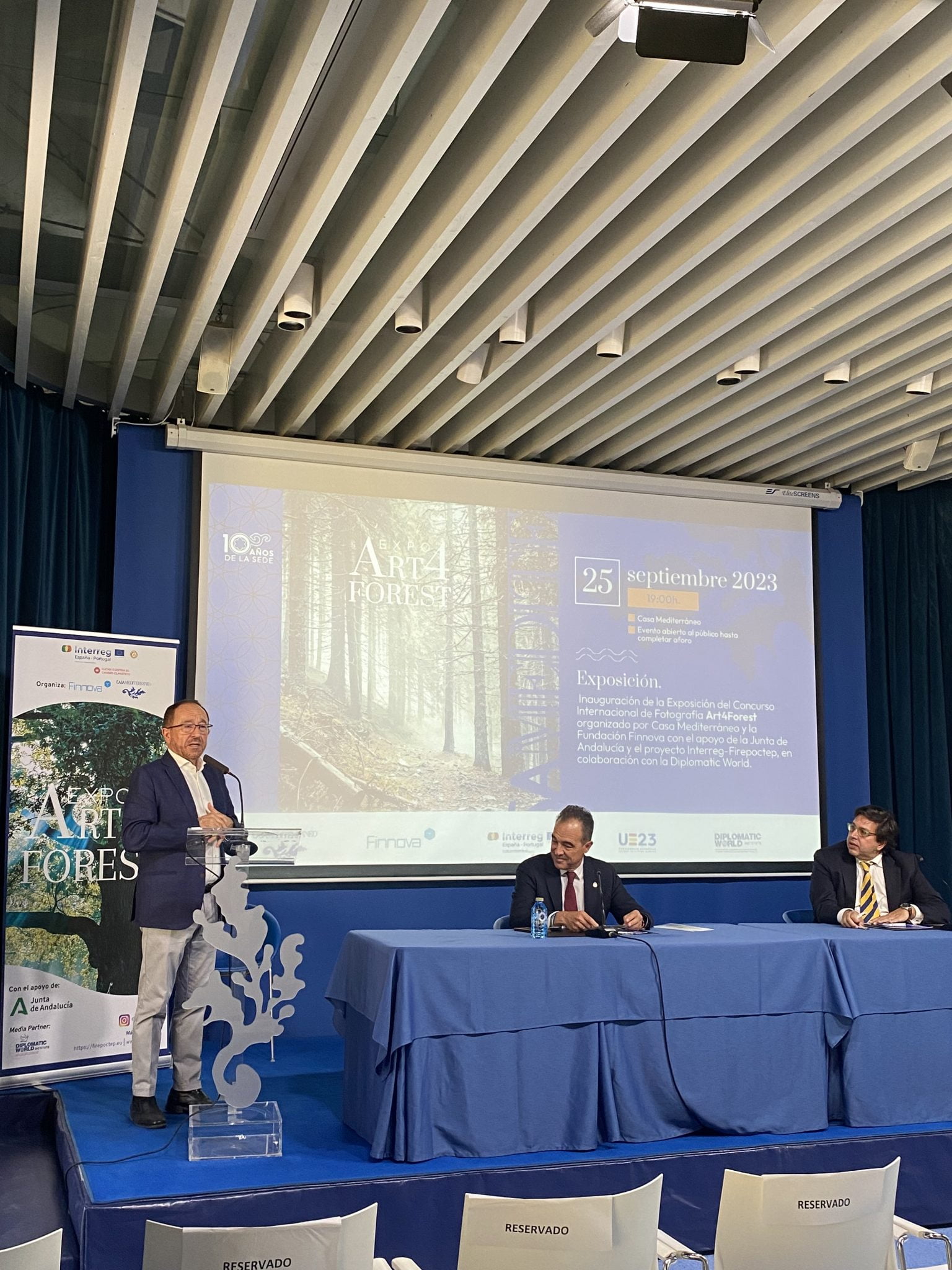 El director de Casa Mediterráneo, Andrés Perelló, el 4° teniente de alcalde y concejal de Presidencia, Innovación, Planes Estratégicos y Proyectos Europeos del Ayuntamiento de Alicante, Antonio Peral Villar, y el director general de Finnova, Juanma Revuelta, inauguraron ayer, lunes 25 de septiembre a las 19h00, la exposición Art4 Forest, una recopilación de las 20 fotografías seleccionadas en el Concurso Internacional de Fotografía Art4Forest, organizado por Finnova y Casa Mediterráneo con el apoyo de la Junta de Andalucía y el proyecto Interreg-Firepoctep, en colaboración con la Diplomatic World. La exposición permanecerá abierta durante los próximos dos meses, y se trasladará posteriormente a Bruselas.